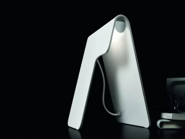 La sorgente luminosa è nascosta all’interno del raggio di curvatura, caratterizzato da un taglio sottile che assolve alla duplice funzione di ridurre il calore e aggiungere un ulteriore segno estetico. Il bianco definisce per contrasto i volumi e rivela il carattere di una lampada che riesce a inserirsi col suo fascino discreto in ogni ambiente, come lampada da lettura sul comodino o punto luce sul tavolo di lavoro.