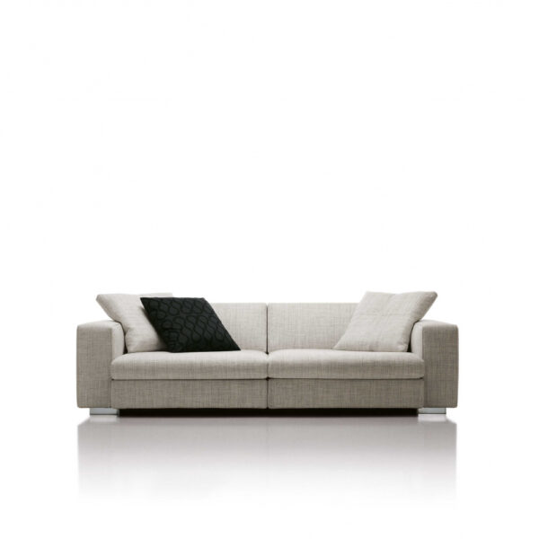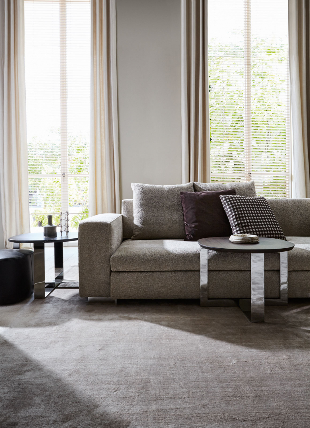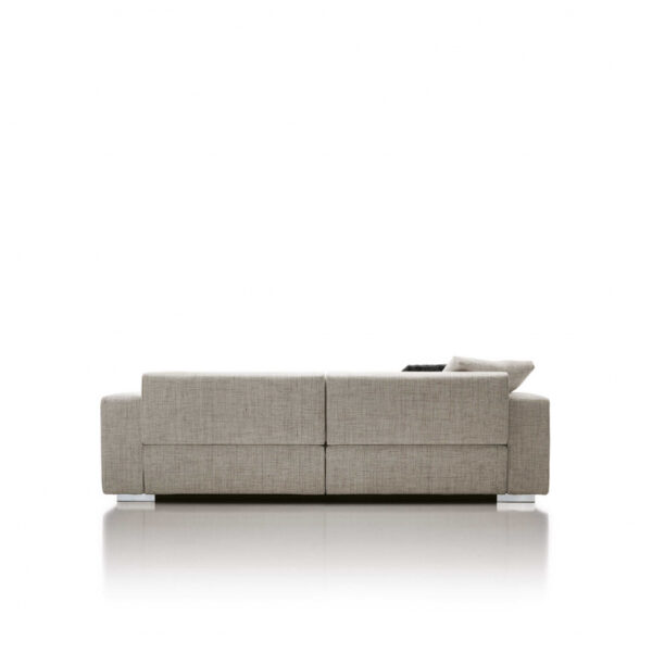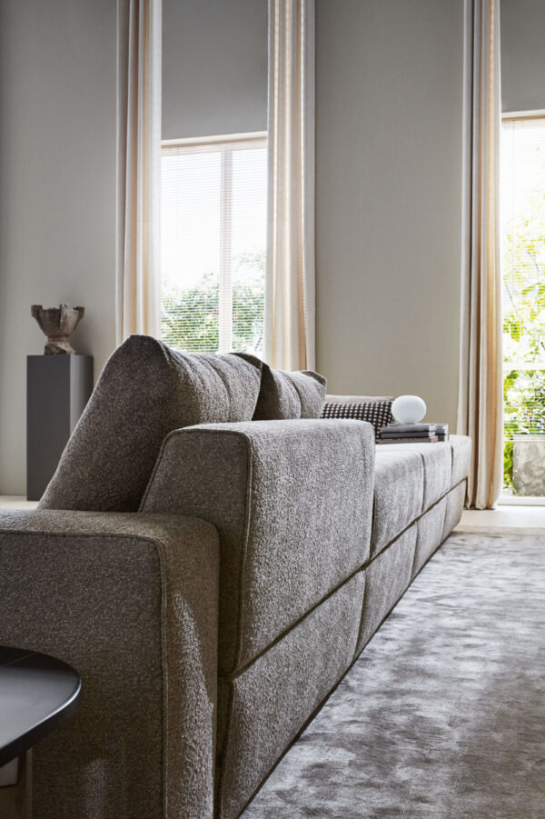 La sua ampia modularità permette di comporre divani tradizionali, composizioni con chaise longue o isole day bed.